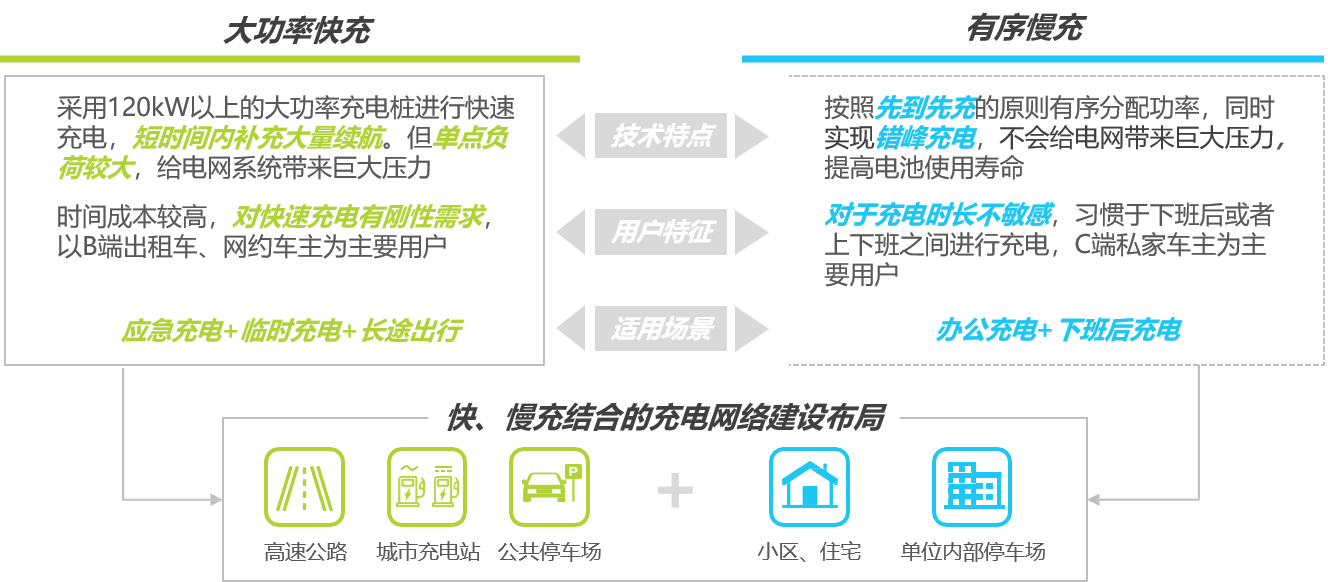 充電模式的有效發(fā)展:大功率直流快充成為剛需,充電難并不僅僅局限于充電基礎(chǔ)設(shè)施的數(shù)量與分布上,如何有效提高充電效率同樣重要,大功率快充和有序慢充體系的結(jié)合為未來充電模式的發(fā)展方向。