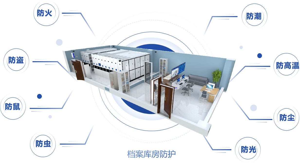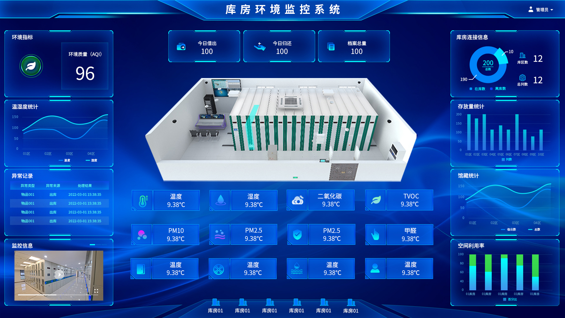 云涌科技智能環(huán)境控制綜合管理系統(tǒng)通過智能設(shè)備采集所有庫(kù)房?jī)?nèi)的溫度、濕度、漏水、人員侵入等數(shù)據(jù),并通過自動(dòng)模式控制空調(diào)、除濕加濕凈化一體機(jī)、電動(dòng)窗簾、燈光、新風(fēng)機(jī)等智能設(shè)備,達(dá)到自動(dòng)調(diào)節(jié)溫濕度及空氣凈化的目的,實(shí)現(xiàn)了庫(kù)房?jī)?nèi)空氣質(zhì)量的智能管理,保護(hù)了檔案本身安全和從業(yè)人員的身體健康。同時(shí)接入視頻監(jiān)控系統(tǒng),實(shí)時(shí)監(jiān)控檔案庫(kù)房實(shí)時(shí)內(nèi)畫面;出入口部署門禁控制設(shè)備,通過指紋、門禁卡、密碼等方式控制人員的進(jìn)入,只有有權(quán)限的管理人員才能進(jìn)入,有效保證檔案實(shí)體的安全。
