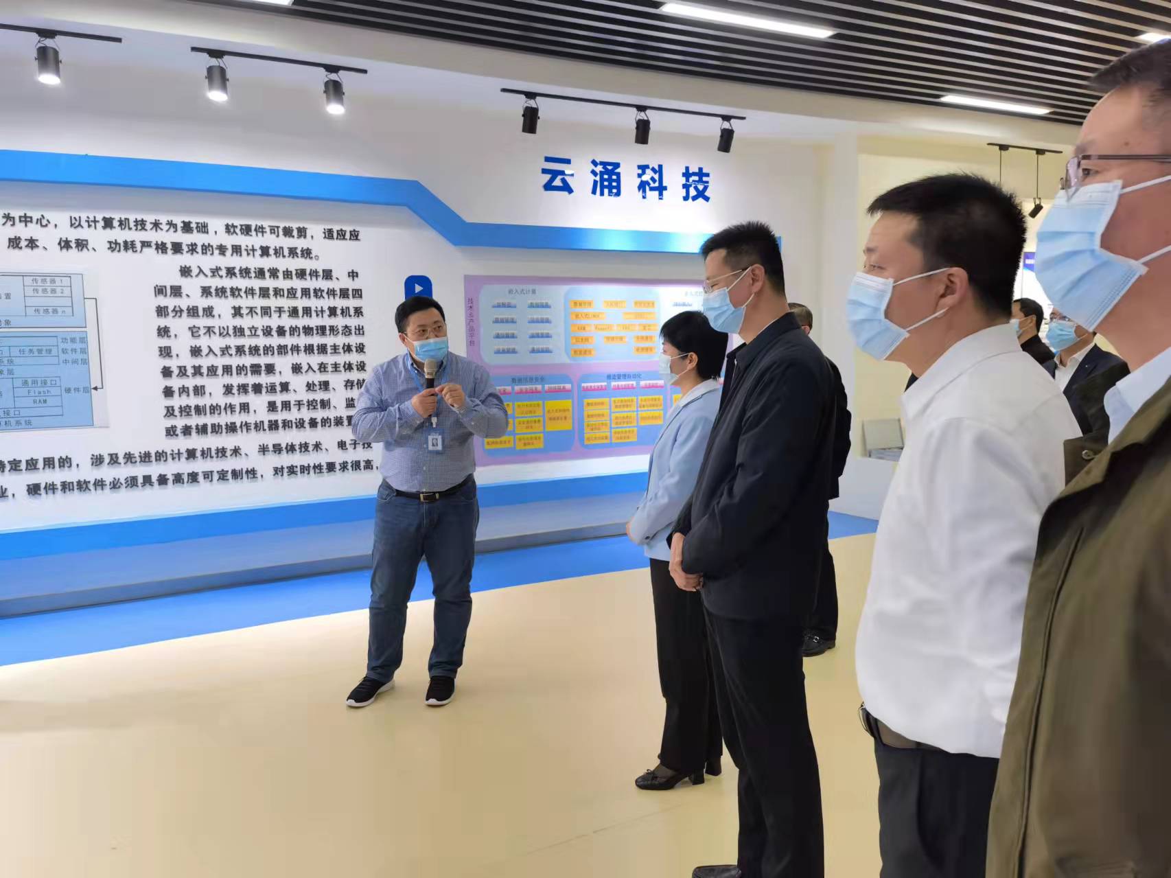 ? 為深入貫徹落實(shí)習(xí)近平總書記關(guān)于科技創(chuàng)新的重要論述,按照省市委的決策部署,堅(jiān)持把創(chuàng)新作為第一動(dòng)力,堅(jiān)定不移實(shí)施創(chuàng)新驅(qū)動(dòng)的發(fā)展戰(zhàn)略,加快構(gòu)建科技創(chuàng)新生態(tài)體系,引領(lǐng)全市經(jīng)濟(jì)更高質(zhì)量的發(fā)展,?10月26日,泰州市市長(zhǎng)萬(wàn)聞華、海陵區(qū)區(qū)長(zhǎng)劉劍波以及市區(qū)級(jí)、園區(qū)等相關(guān)領(lǐng)導(dǎo)蒞臨江蘇云涌電子科技股份有限公司,考察調(diào)研科技孵化和企業(yè)創(chuàng)新工作,云涌科技副總裁、董事會(huì)秘書姜金良陪同參觀,并進(jìn)行了講解。