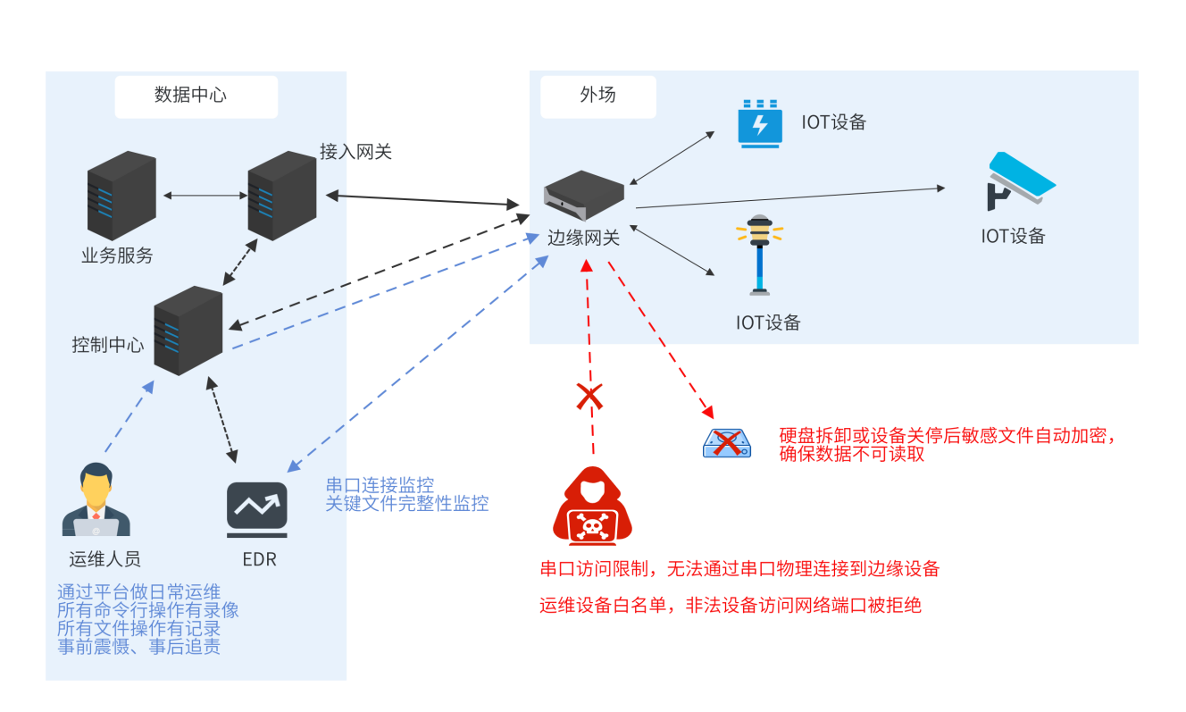 云涌邊緣計算安全管控平臺基于零信任理念即永不信任、始終驗證,動態(tài)授權(quán)原則,以邊緣計算終端為中心,采用SDP軟件定義邊界網(wǎng)絡安全架構(gòu),為基于云、邊、端三級分層模型的物聯(lián)網(wǎng)系統(tǒng),提供增強身份認證和授權(quán)、設備接入安全、網(wǎng)絡訪問與傳輸安全、數(shù)據(jù)存儲安全、安全應用倉庫、安全運維等多維度防護。同時平臺提供邊緣設備全生命周期管理,從設備出廠到設備下線,全方位保護設備整體安全。平臺可廣泛應用于智慧交通、車路協(xié)同等物聯(lián)網(wǎng)或工業(yè)物聯(lián)網(wǎng)領域。