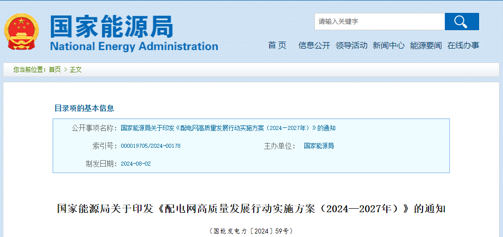 ? ? ? 前不久,國家能源局發(fā)布《配電網高質量發(fā)展行動實施方案(2024—2027年)》,其中提出,未來三年工作重點將圍繞供電能力、抗災能力和承載能力提升,結合各地實際,重點推進“四個一批”建設改造任務。