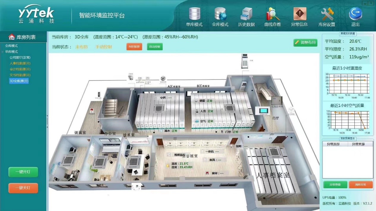 云涌檔案一體化管控平臺,集成了物聯(lián)網(wǎng)云平臺、低功耗的物聯(lián)網(wǎng)通信技術(shù),環(huán)境監(jiān)控系統(tǒng),底層傳感器采集,電機(jī)控制,結(jié)構(gòu)設(shè)計(jì)等技術(shù),利用云平臺的處理能力和存儲技術(shù),構(gòu)成一個(gè)一體化、網(wǎng)絡(luò)化的集中監(jiān)控系統(tǒng),提高日常維護(hù)效率,降低勞動(dòng)強(qiáng)度和人工成本。